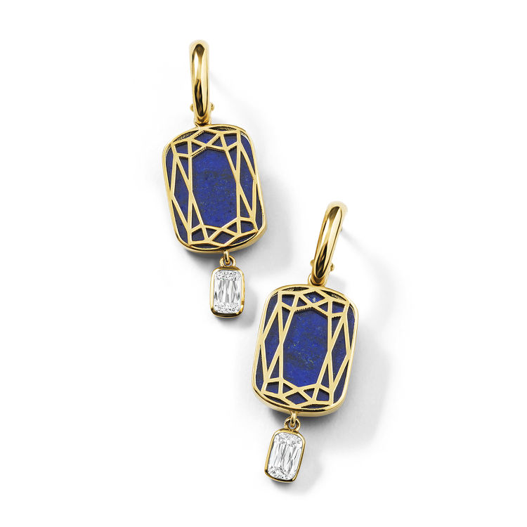 These earrings are from a limited collection celebrating the 25th anniversary of ASHOKA®. An 18K gold motif of the diamond’s faceting is set atop lapis lazuli, suspending an ASHOKA diamond drop. A talisman is an object with magical powers — a reference to the legendary power of ASHOKA.