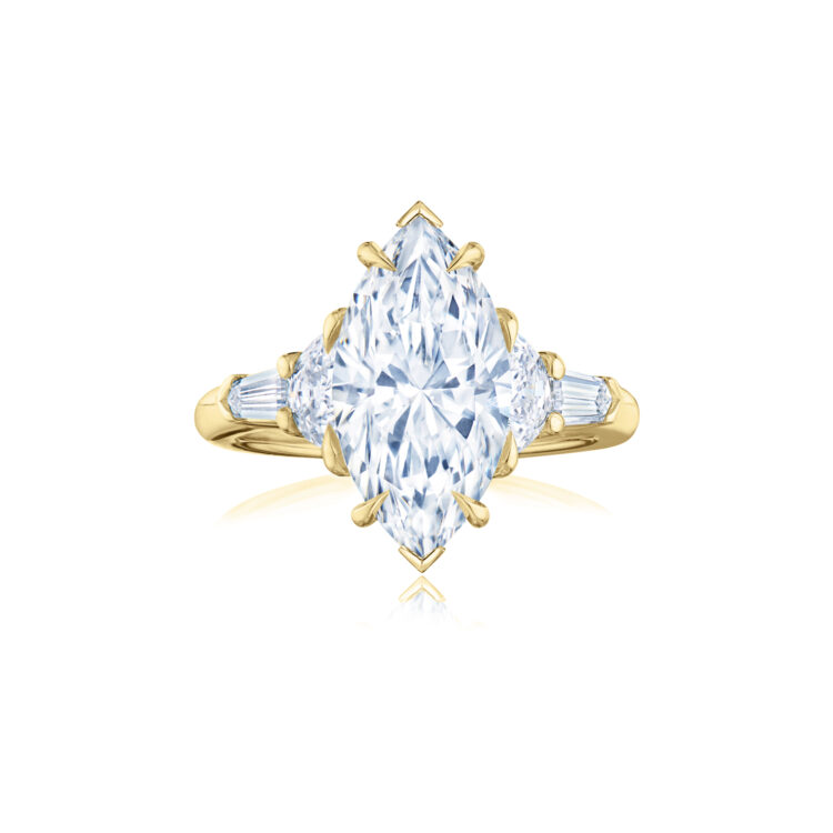 • Engagement Ring with a Marquise Diamond Diamond and Double Side Stones in 18K Yellow Gold - Kwiat