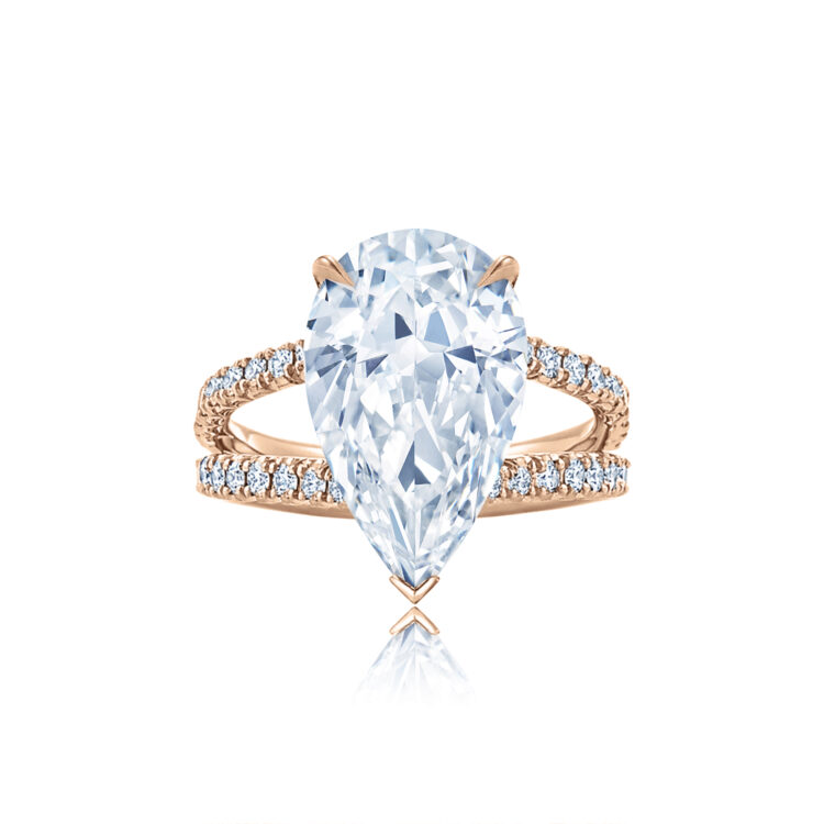 Engagement Ring with a Pear Shape Diamond Diamond and Pavé Split Band in 18K Rose Gold - KwiatEngagement Ring with a Pear Shape Diamond Diamond and Pavé Split Band in 18K Rose Gold - KwiatEngagement Ring with a Pear Shape Diamond Diamond and Pavé Split Band in 18K Rose Gold - Kwiat