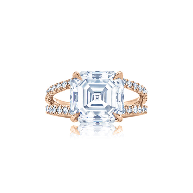 • Engagement Ring with an Asscher Cut Diamond Diamond and Pavé Split Band in 18K Rose Gold - Kwiat