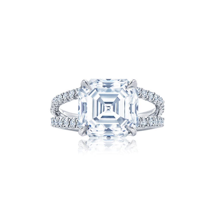 Engagement Ring with an Asscher Cut Diamond Diamond and Pavé Split Band in Platinum - KwiatEngagement Ring with an Asscher Cut Diamond Diamond and Pavé Split Band in Platinum - KwiatEngagement Ring with an Asscher Cut Diamond Diamond and Pavé Split Band in Platinum - Kwiat