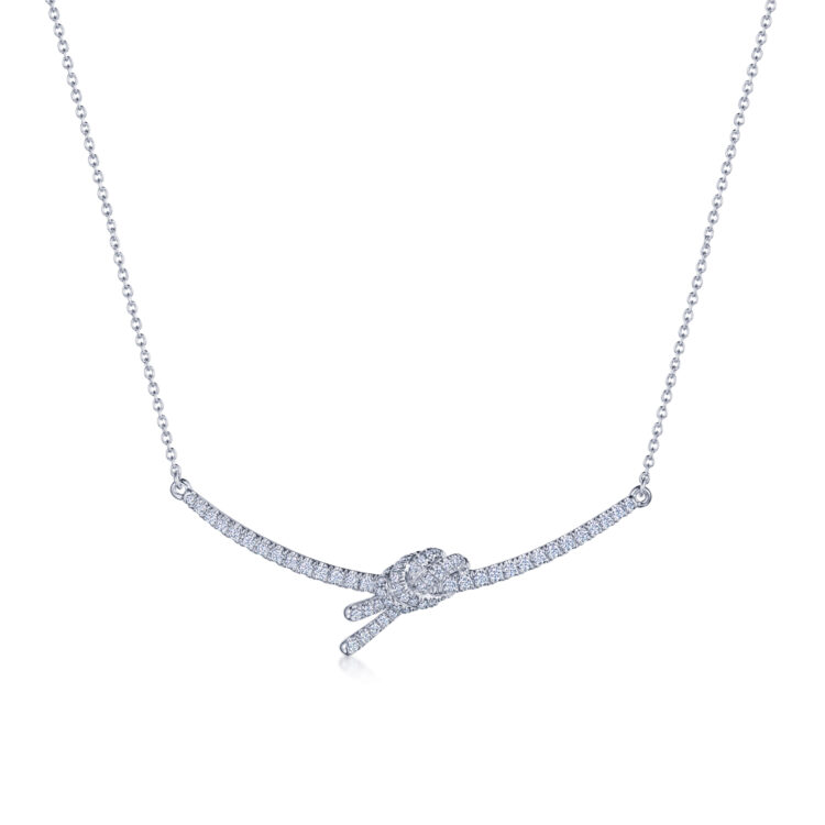 Our Entwine collection breathes new life into the knot, a classic jewelry motif. In this platinum pendant, a strand of pavé diamonds is cinched by a hitch knot to create an elegant, modern style for everyday brilliance.