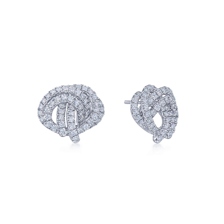 Our Entwine collection breathes new life into the knot, a classic jewelry motif. These earrings comprise strands of platinum, sparkling with pavé diamonds and loosely knotted.