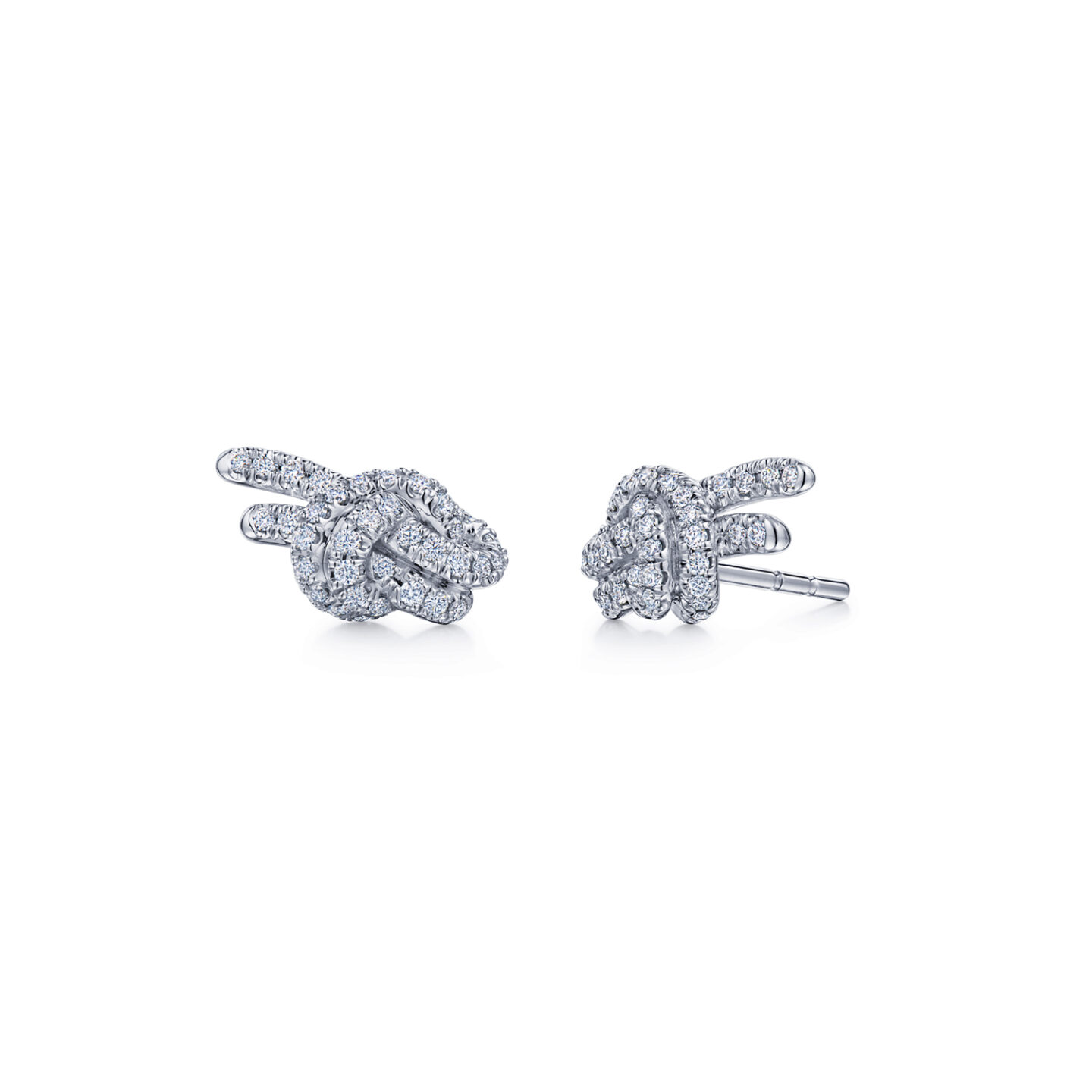 Our Entwine collection breathes new life into the knot, a classic jewelry motif. In these earrings, double strands of platinum, sparkling with pavé diamonds, appear fastened like small knots.