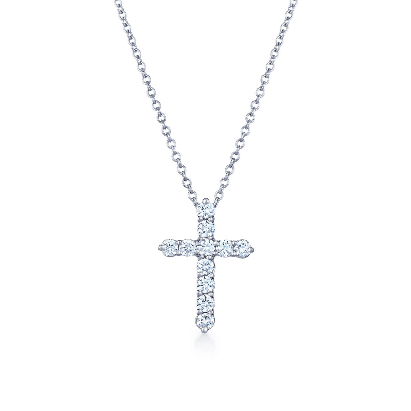 Celebrate faith with a cross of brilliant diamonds. Each is cut to Kwiat’s peerless standards and set in 18K white gold. Skilled artisans carefully craft this pendant to allow maximum light to enter the diamonds, amplifying their sparkle.