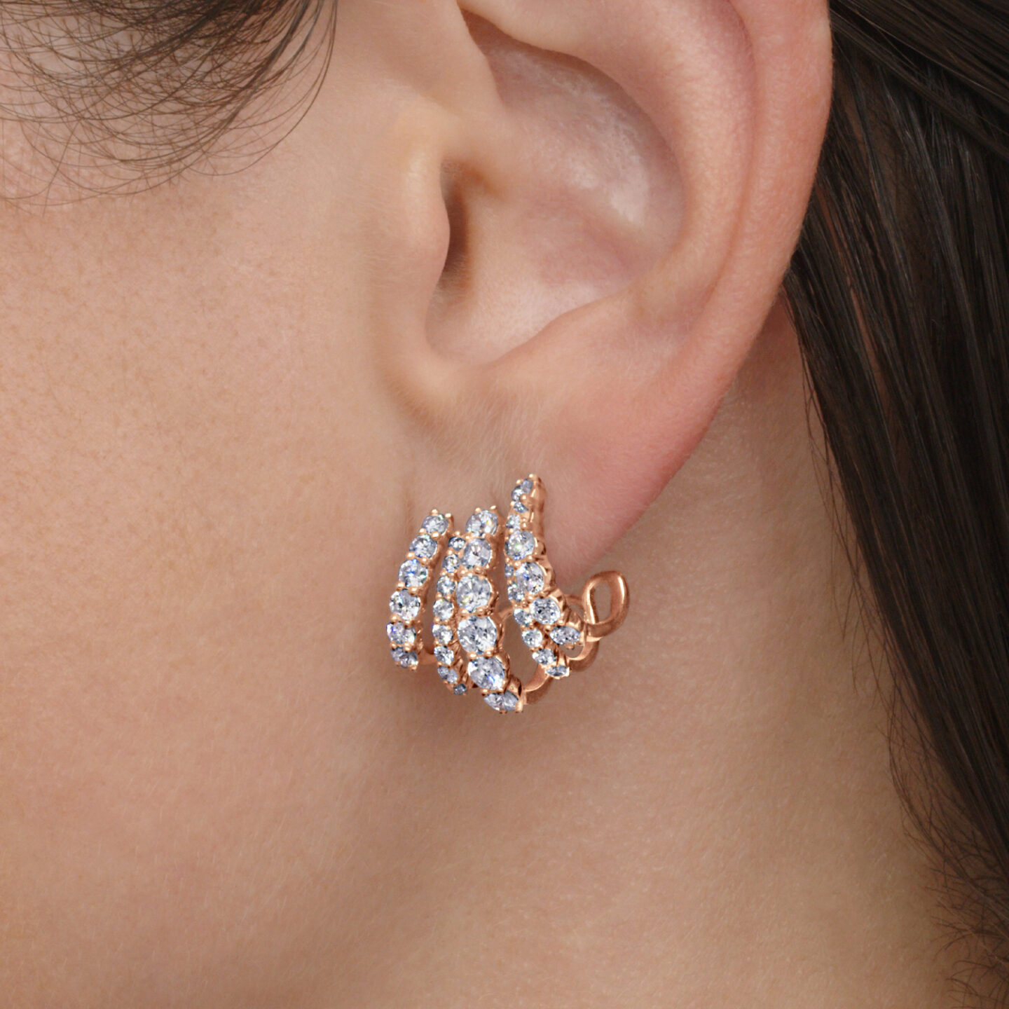 Five strands of diamonds create a multiple hoop effect. Each stone is cut to Kwiat’s peerless standards for the utmost beauty and brilliance. Crafted of 18K rose gold, these modern earrings frame the face with light from day to evening.