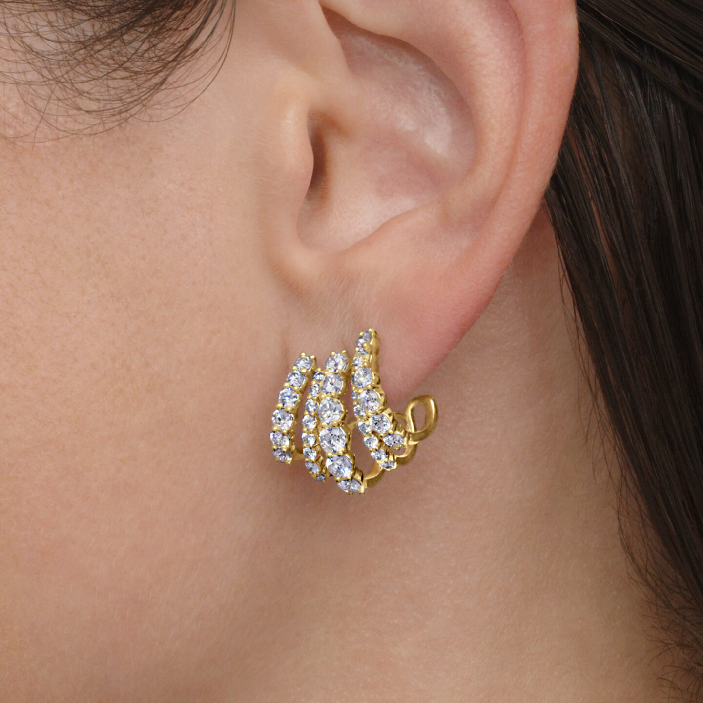 Five-Row Huggie Earrings with Diamonds