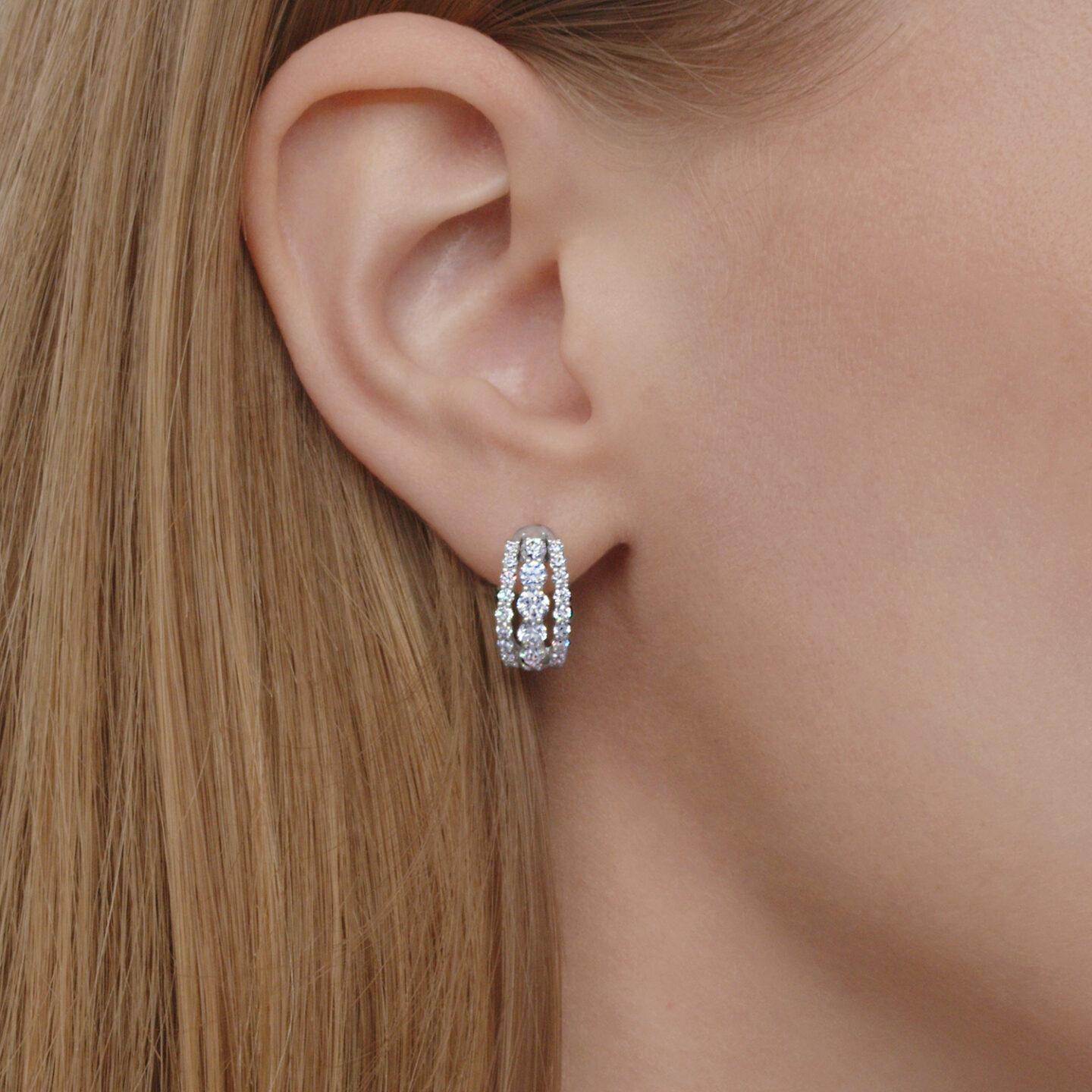 Exquisite diamonds in harmonious lines frame the face with brilliance. Each stone is cut to Kwiat’s exacting standards and set in 18K white gold earrings designed to enhance sparkle. Crafted for comfort, they’re easy to wear from day to night.