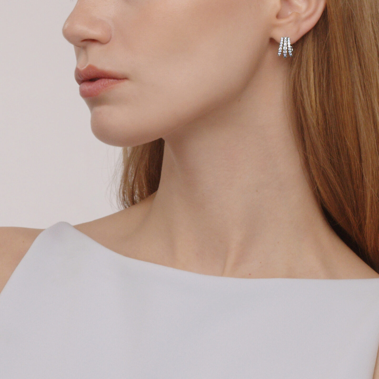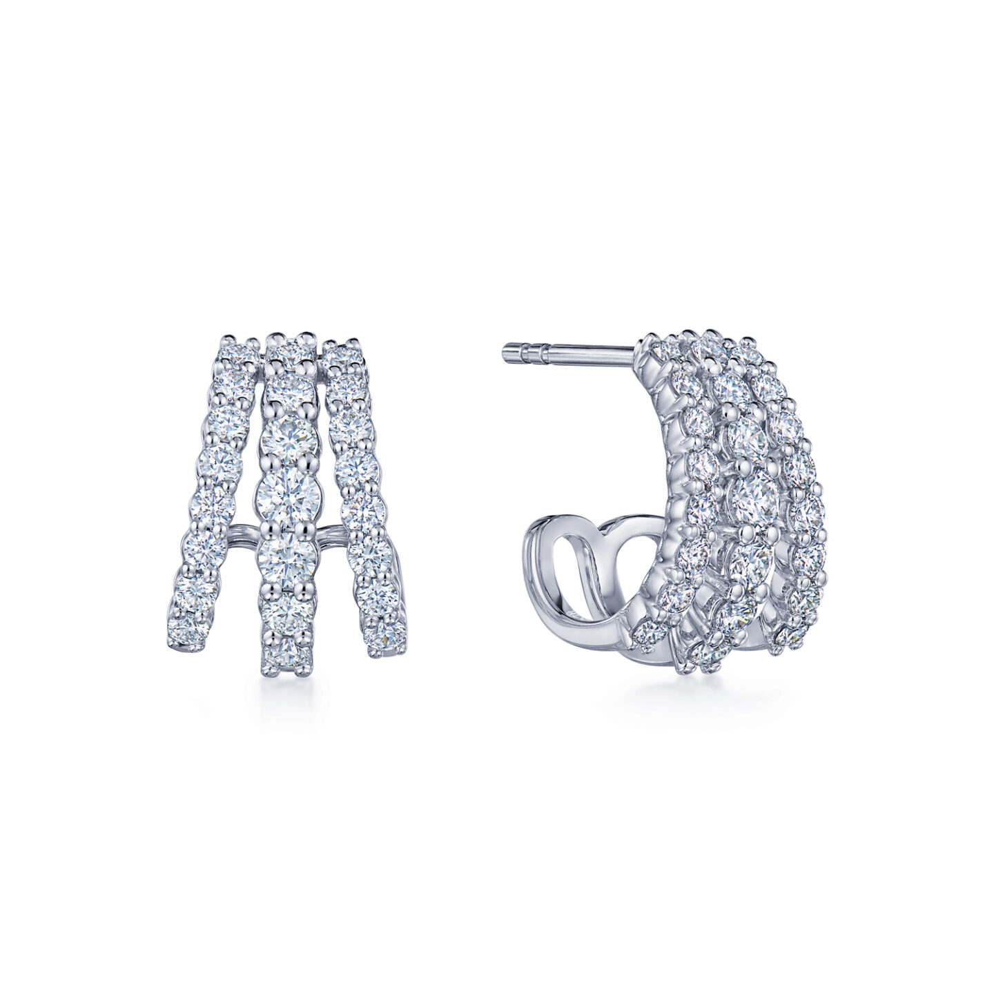 Three strands of diamonds create a multiple hoop effect. Each stone is cut to peerless Kwiat standards for the utmost beauty and brilliance. Crafted of 18K white gold, these modern earrings frame the face with light from day to evening.