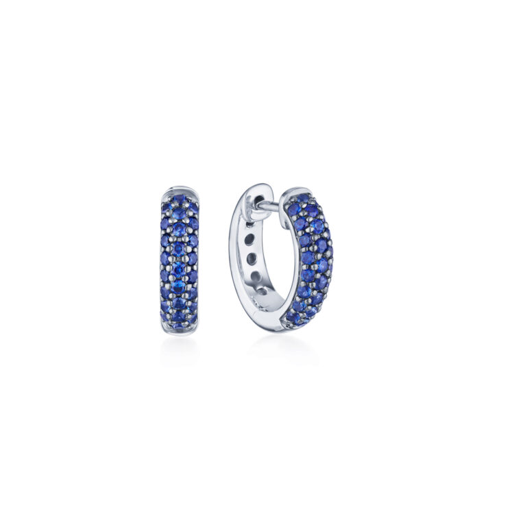 The ideal everyday earrings are versatile and comfortable with just enough sparkle and color. In 18K white gold, meticulously set with sapphire pavé, these fit the bill. Kwiat artisans carefully engineer them with invisible hinges for easy on and off.