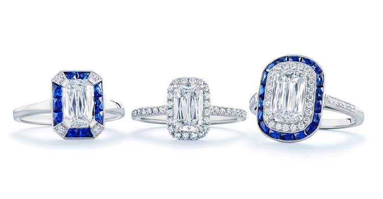 Available exclusively at Kwiat in the U.S., the trademarked Ashoka diamond has 62 precisely arranged facets—a consistency that sets it apart from all other fancy shapes. These precise dimensions optimize brilliance, creating a stone that looks 30%-50% larger than an emerald cut diamond of the same carat weight. Kwiat complements the graceful, elongated shape of Ashoka in light, airy designs that enhance the diamonds’ sparkle and make them appear to “float” against the skin.
