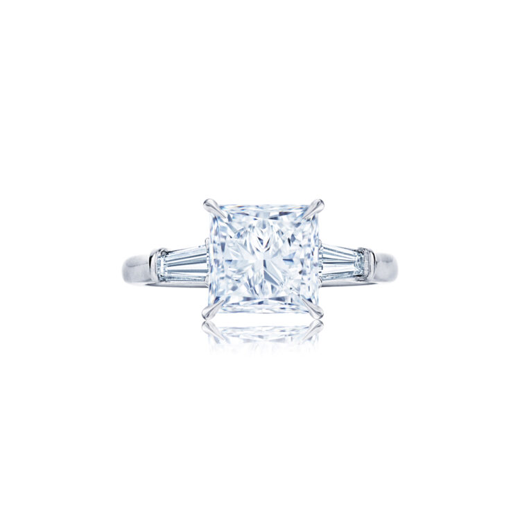 Princess Cut Diamond Engagement Ring with Two Tapered Baguette Side Stones in Platinum - KwiatPrincess Cut Diamond Engagement Ring with Two Tapered Baguette Side Stones in Platinum - KwiatPrincess Cut Diamond Engagement Ring with Two Tapered Baguette Side Stones in Platinum - Kwiat