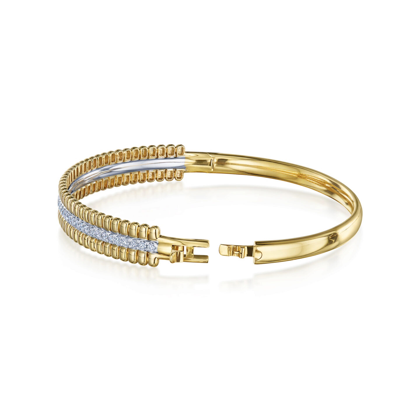 Two-Row Bangle with Diamonds in 18K Yellow and White Gold