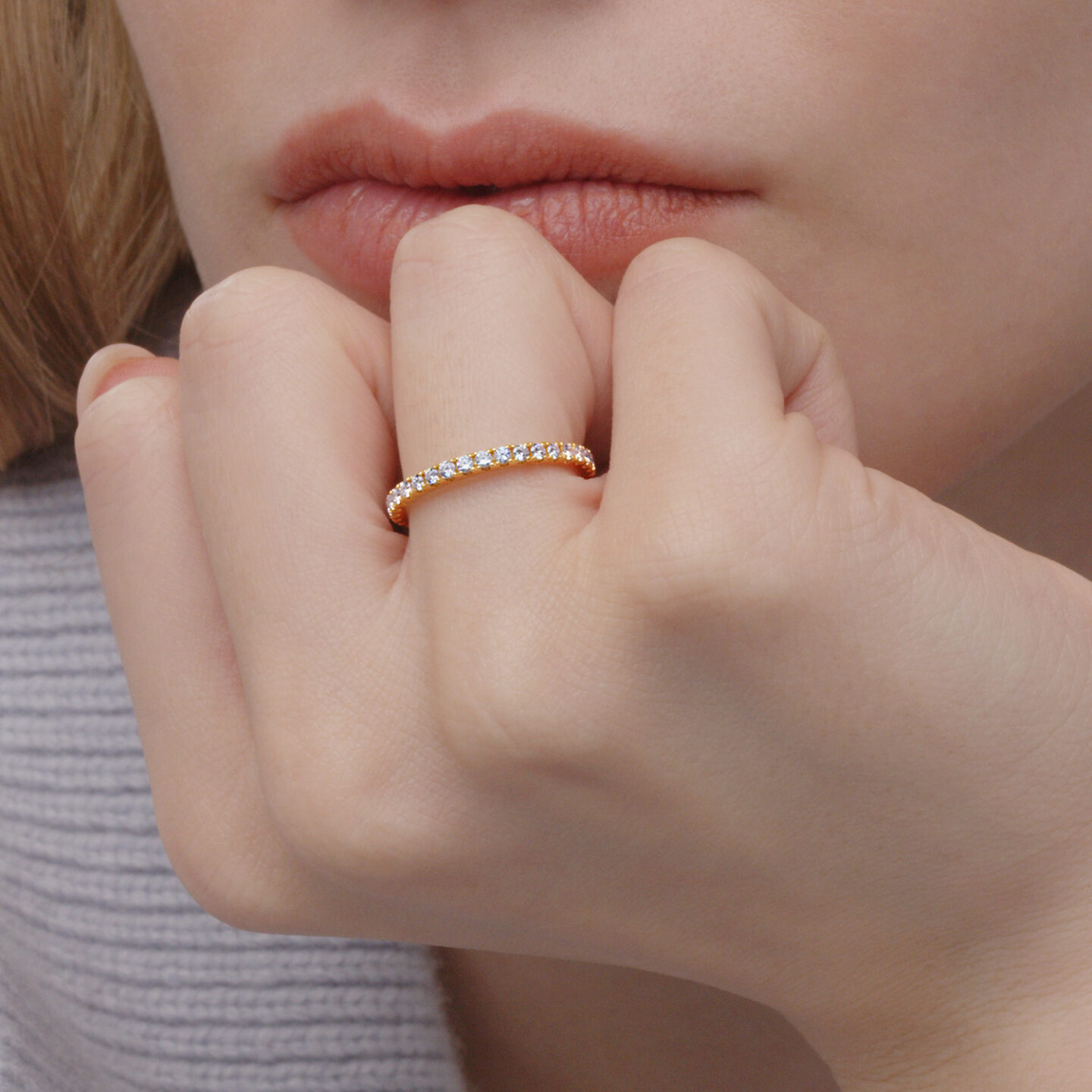 This sparkling design makes a beautiful wedding band or adds interest to your ring stack. The diamonds are cut to exacting Kwiat standards, releasing their full brilliance, and set in 18K yellow gold. Master artisans carefully craft this 1.9mm wide ring to be comfortable and durable for everyday wear while maintaining a light, delicate effect.