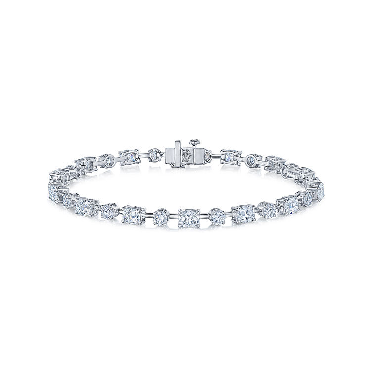 A diamond line bracelet is an iconic essential that always remains relevant. In this Starry Night style, alternating Kwiat Cushion™ and Round diamonds orbit the wrist like a miniature twinkling galaxy. Each diamond is cut to our peerless standards and connected by unnoticeable links in a lightweight platinum design. Minimal metal allows more light to enter the diamonds, amplifying their brilliance.