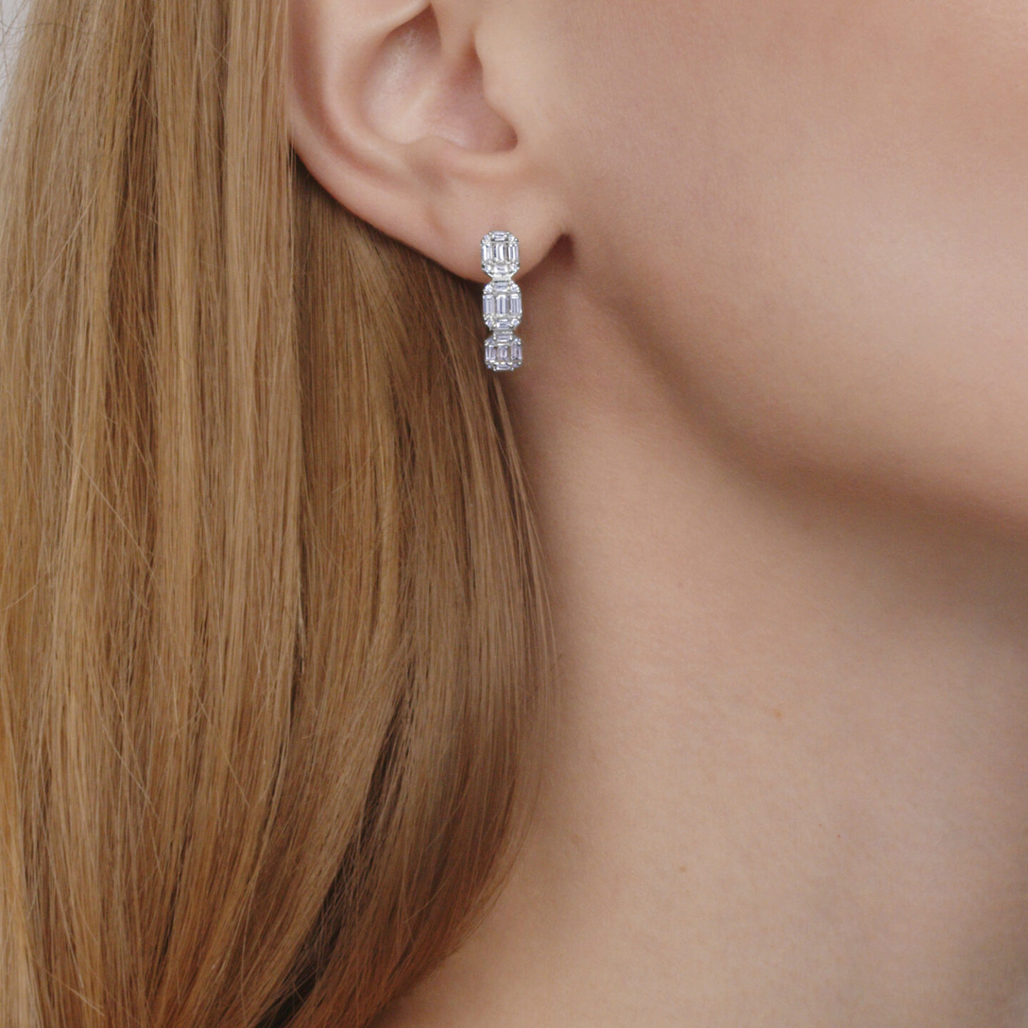 Every diamond in these earrings is absolutely dazzling, thanks to Kwiat’s peerless cutting standards. Look closely and you’ll see that each emerald segment of these dazzling hoops is actually a mélange of step-cut and round brilliant diamonds joined like puzzle pieces to create the effect of a larger stone. Each one, no matter its size, exemplifies Kwiat’s peerless standards for cutting diamonds. Master artisans handcraft this design to be lightweight and comfortable, for a brilliant look that’s easy to wear from day to night.