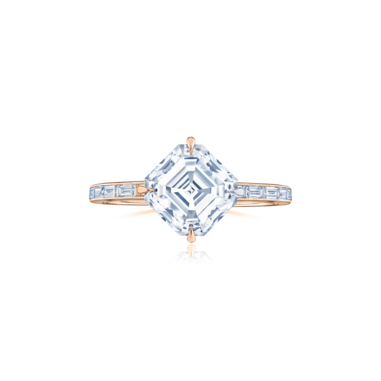 Engagement Ring with a Compass-Set Asscher Cut Diamond and Baguette Band in 18K Rose Gold - KwiatEngagement Ring with a Compass-Set Asscher Cut Diamond and Baguette Band in 18K Rose Gold - KwiatEngagement Ring with a Compass-Set Asscher Cut Diamond and Baguette Band in 18K Rose Gold - Kwiat