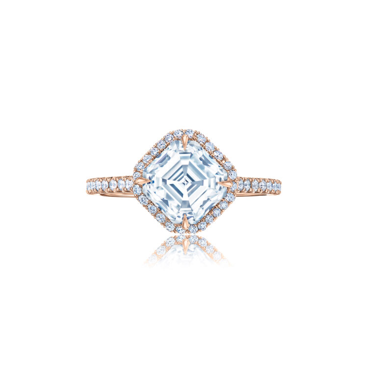 • Engagement Ring with a Compass Set Asscher Diamond and Pavé in 18K Rose Gold - Kwiat