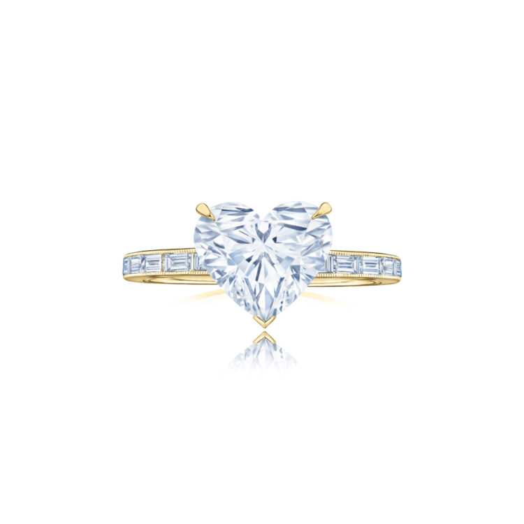 Engagement Ring with a Heart Shape Diamond and Baguette Band in 18K Yellow Gold - KwiatEngagement Ring with a Heart Shape Diamond and Baguette Band in 18K Yellow Gold - KwiatEngagement Ring with a Heart Shape Diamond and Baguette Band in 18K Yellow Gold - Kwiat