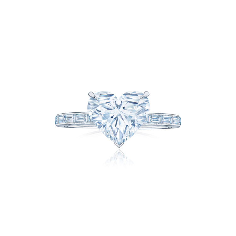 Engagement Ring with a Heart Shape Diamond and Baguette Band in Platinum - KwiatEngagement Ring with a Heart Shape Diamond and Baguette Band in Platinum - KwiatEngagement Ring with a Heart Shape Diamond and Baguette Band in Platinum - Kwiat
