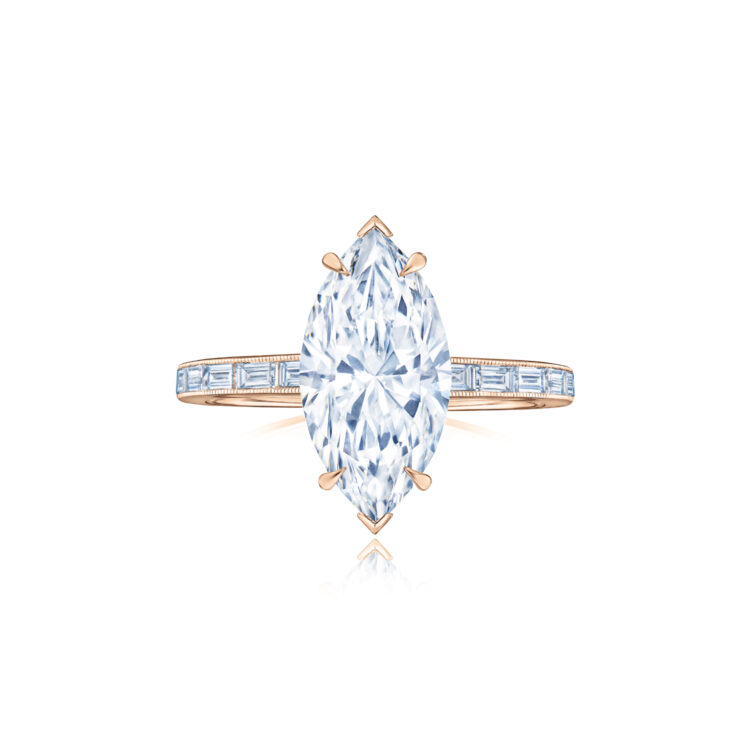 • Engagement Ring with a Marquise Shape Diamond and Baguette Band in 18K Rose Gold - Kwiat