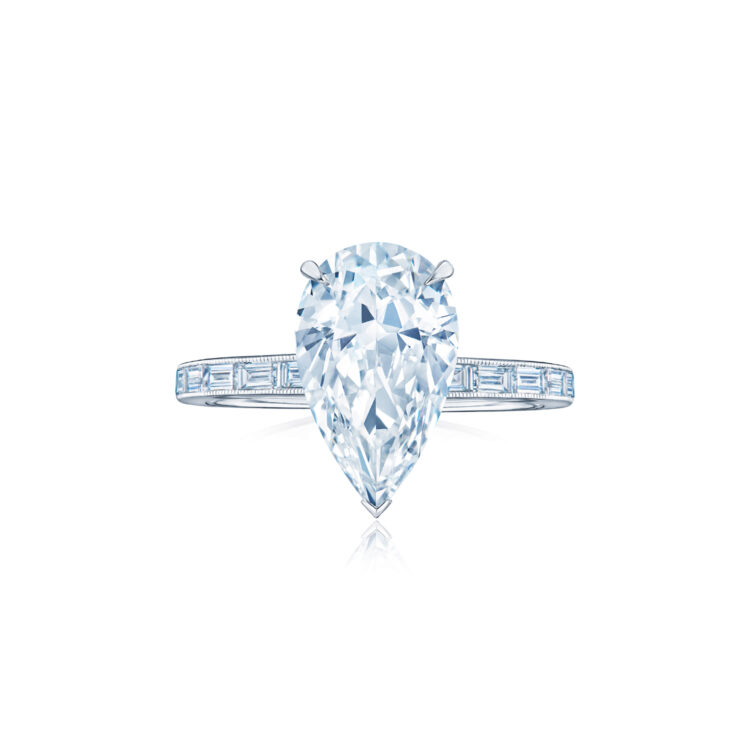 Engagement Ring with a Pear Shape Diamond and Baguette Band in Platinum - KwiatEngagement Ring with a Pear Shape Diamond and Baguette Band in Platinum - KwiatEngagement Ring with a Pear Shape Diamond and Baguette Band in Platinum - Kwiat