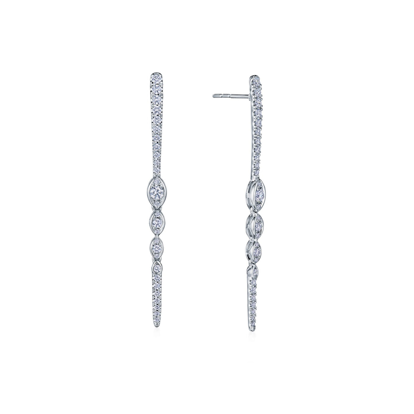 Delicate diamond vines dance in the breeze like strands of a wisteria cluster. Although petite, the stones are cut to Kwiat’s peerless standards to ensure maximum brilliance. Master artisans meticulously engineered the 18K white gold design with invisible links that allow the earrings to gently sway without twisting.