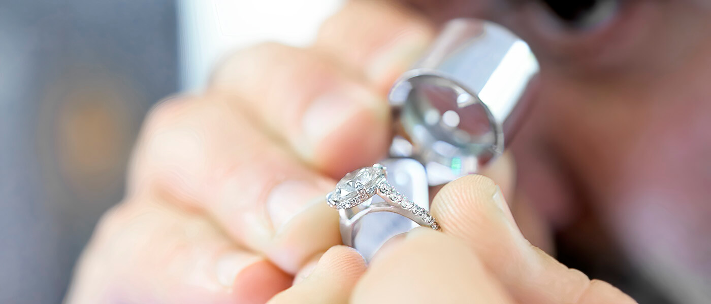 Each stone is examined to make sure that all of the sides and facets are equal. A round brilliant diamond with good symmetry will have equal angles throughout the crown (the top half) and throughout the pavilion (the bottom half). It will also have facets of equal size and shape that meet at precise points, along with a number of other grading factors. GIA ratings range on a scale: Excellent, Very Good, Good, Fair, or Poor.