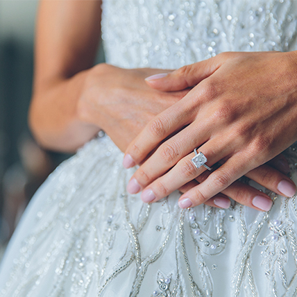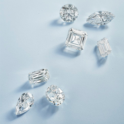 In order to select your diamond, you’ll need to think about the shape and the type of faceting that appeals to you. We suggest starting this process with an open mind. Try on a few different shapes and get a sense of what looks best on you. Once you identify the shape you like, you’re ready to begin looking at the actual diamonds. It’s important to remember that a diamond is a natural product and one shape can look very different from one stone to another.